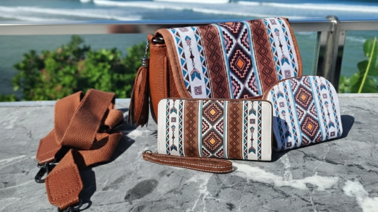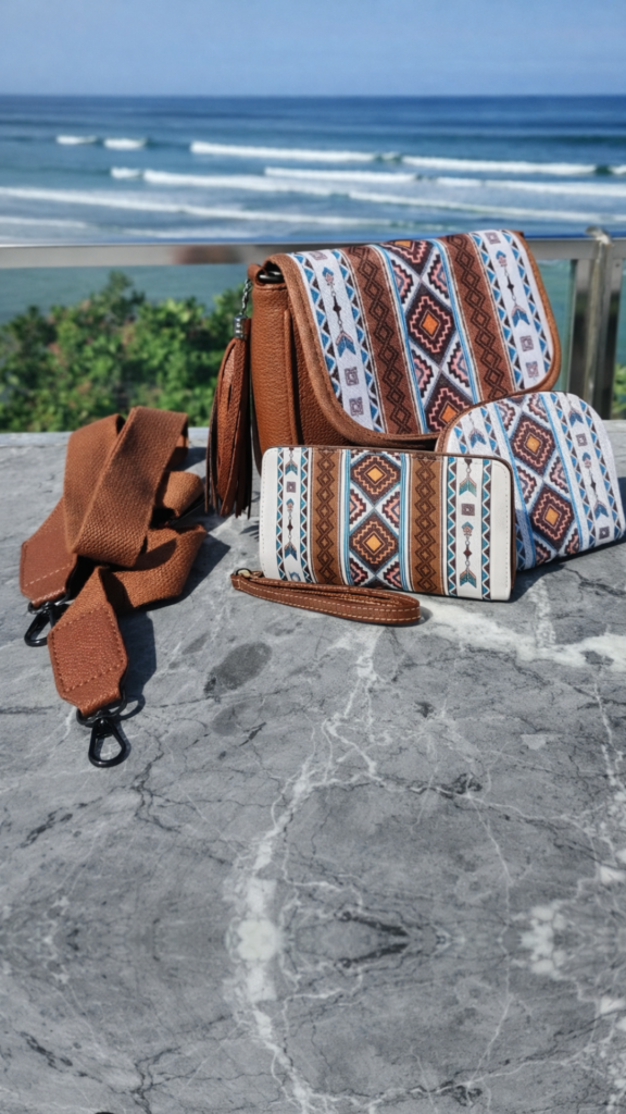 Pack 3 en 1 Bolsos Boho Mujer – Bandolera, Cartera y Monedero | Piel Vegana PU, Diseño Étnico, Alta Calidad